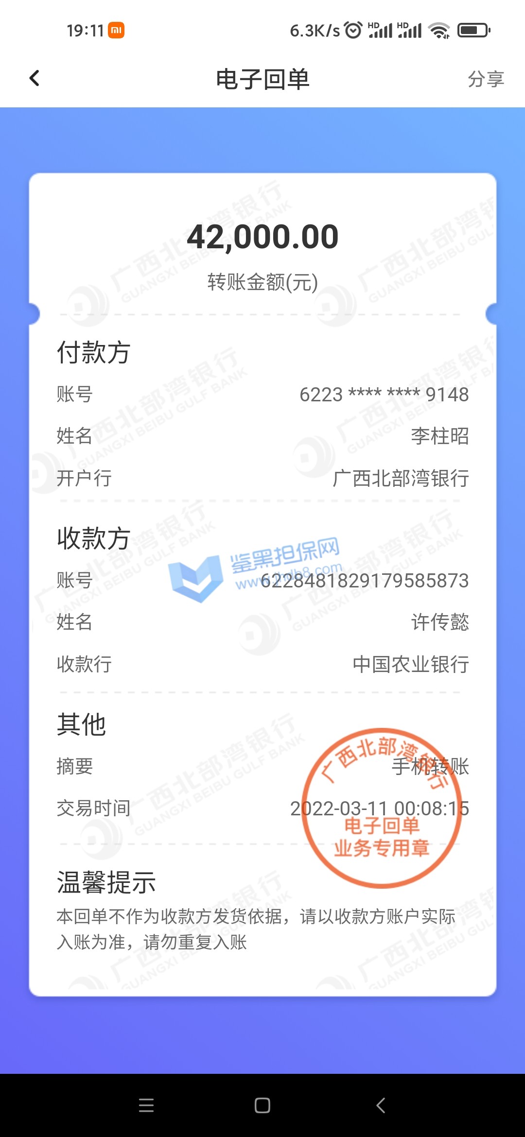 2.已受理的维权无法删除、撤销,鉴黑担保网将对维权事实进行核查验证并公开透明全过程,以保障维权双方的权益;