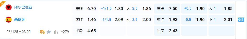 西班牙已经稳拿小组头名,但阿尔巴尼亚尚存一丝出线机会,考虑到两者实力悬殊,料定阿尔巴尼亚会全力猛攻也只是困兽之斗而已,必定被西班牙犀利的反击打穿,本场比赛,小七推荐全场 2.5 大球